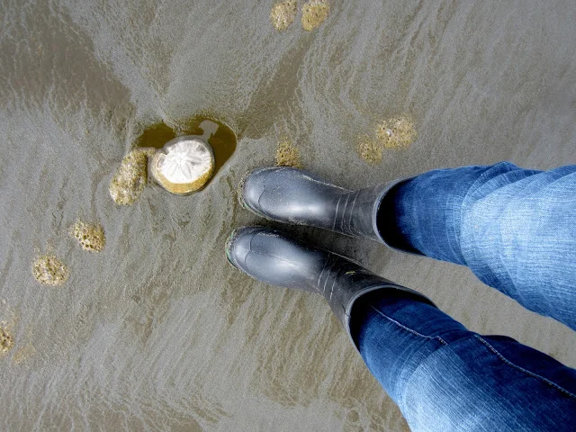 Putting to good use my rubber boots.