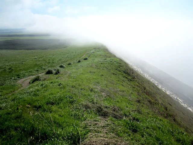 Coastal bluffs with marine layer parting