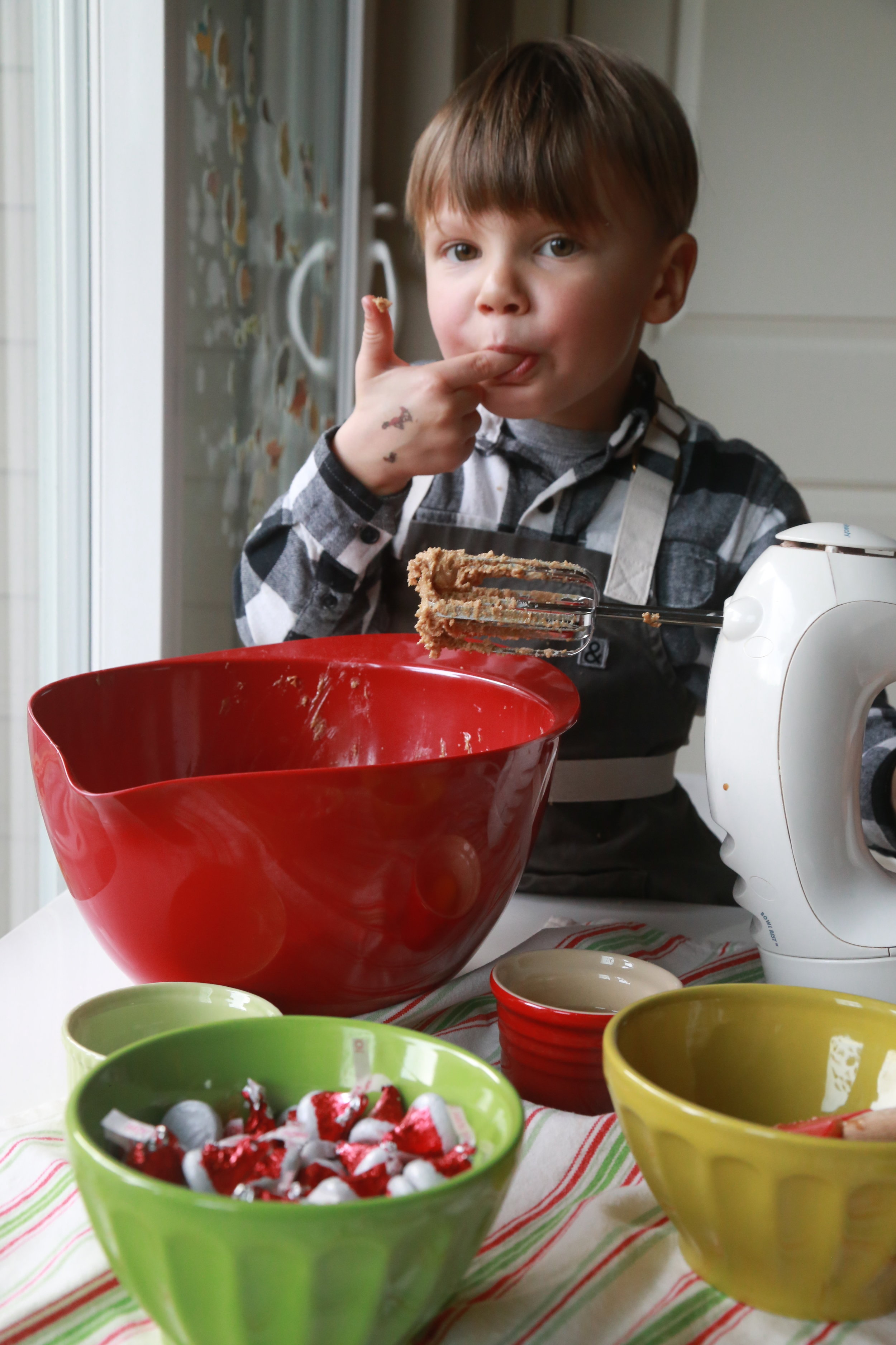 There are so many reasons I enjoy baking with Jasper. I love to see the spark in his eye as he runs to get his apron whenever I suggest we make something. I love his enthusiasm when he sees a table full of ingredients and for his confidence to work the hand mixer all on his own (each time I hold my breath waiting for the beaters to rise up out of the bowl and make a gigantic mess). Aside from the unparalleled one on one time we gain from this activity I love to see him learning the subtle differences between a tablespoon and a teaspoon or baking powder and baking soda. I love to watch him sneak a pinch of sugar here and there and stuff as many chocolate chips in his mouth as he can before I act like I notice.
